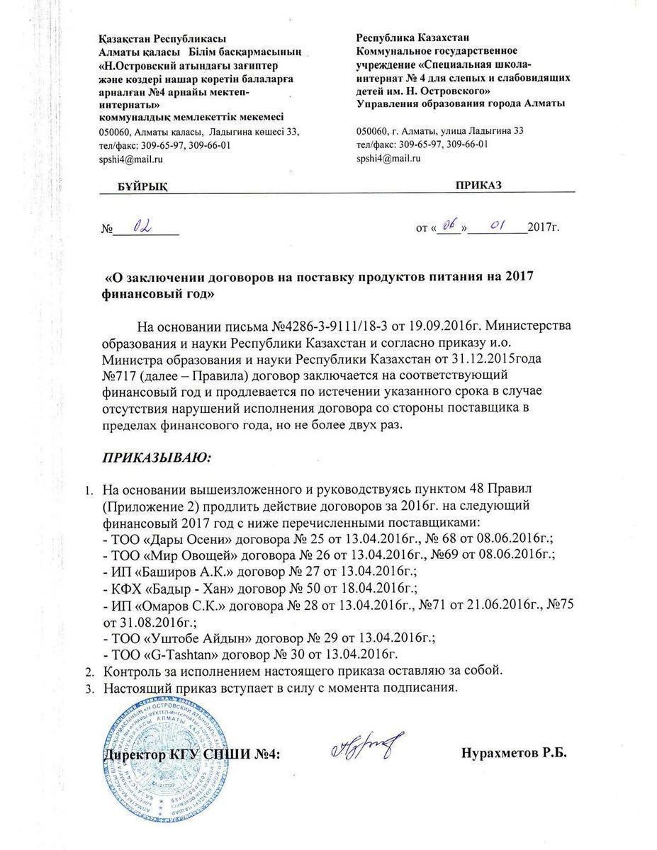 Приказ №16 "О повторном проведении конкурса по продуктам питания"