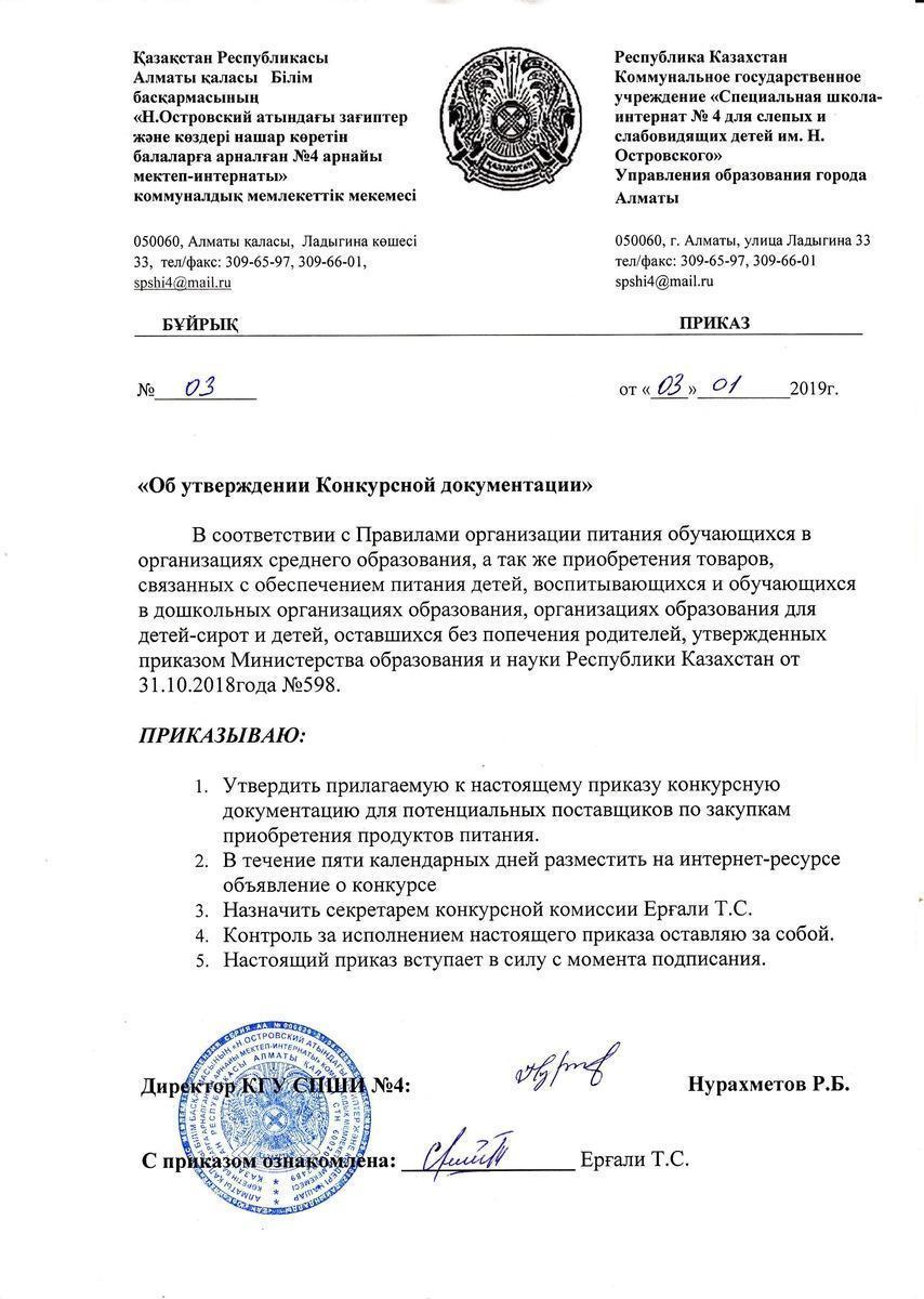 » Приказ №03 "Об утверждении Конкурсной документации"